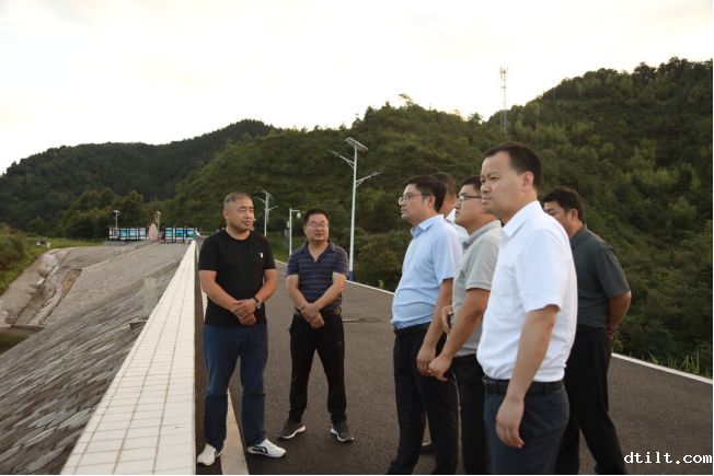 图为县委书记余勋伟一行在水库周边巡视查看并了解水库管护情况