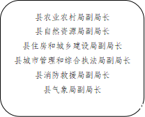 县防指副指挥长由县人民政府常务副县长、县人民武装部政委(或部长)、县人民政府分管相关工作副县长担任;