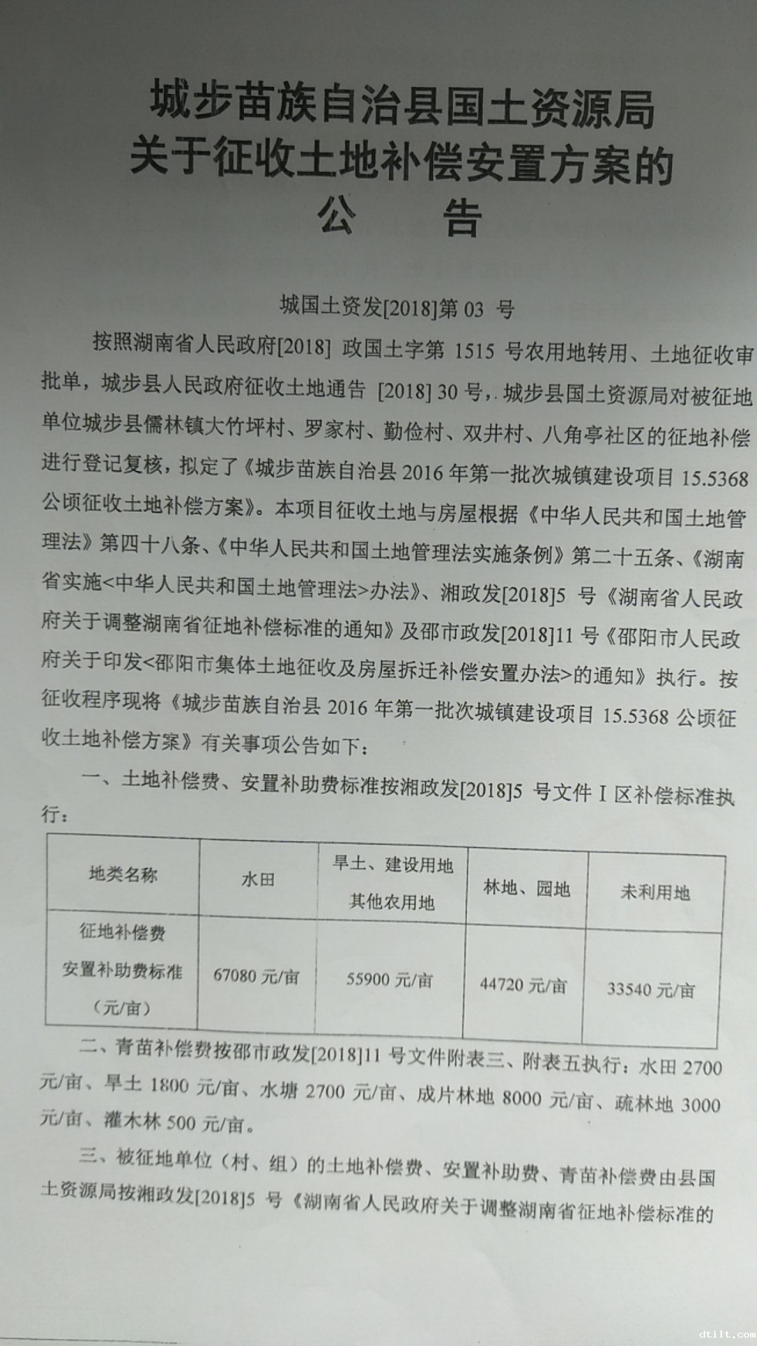 2018年第一批次城镇建设项目征收土地补偿安置方案公告