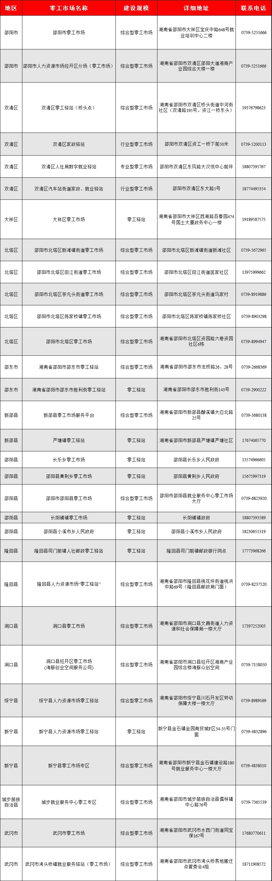 2月12日,省人社厅公布湖南省零工市场(驿站)名录,邵阳市31家零工市场(驿站)上榜。