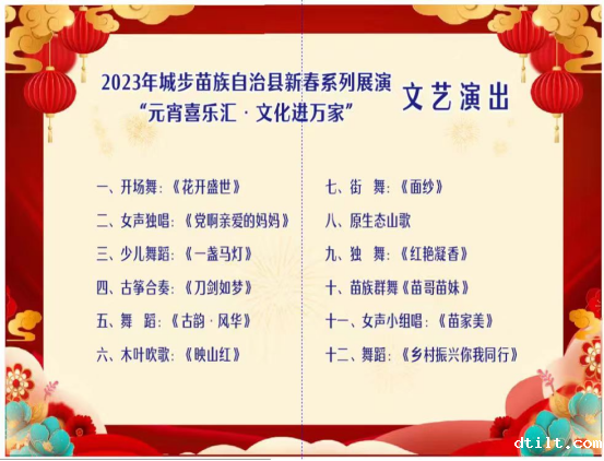 2023年2月5日(元宵节),城步县儒林广场举行了“元宵喜乐汇 文化进万家”活动。本次活动由县委、县政府主办,县委宣传部、县文旅广体局承办,县图书馆、文化馆、文联和各文艺团体协办,县委常委、宣传部长陈芳同志发表了讲话,肯定了我县近几年来群众文化活动取得的成效。当天,活动组织充分、形式多样,虽然是阴雨天气,但参与群众满腔热情,气氛高涨,数万群众参与了此次活动。