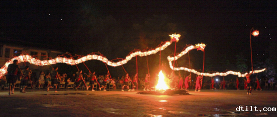 在长安营大寨村,芦笙悠扬,拦门酒、打糍粑、东晋古杉群、杉木王、合龙宴,采访团从惊奇到惊喜,从惊喜到陶醉。夜幕降临,篝火燃起来,国家非物质文化遗产——丹口吊龙在喧天的锣鼓鞭炮声中闪亮登场。唱山歌,这边唱来那边和,挤油尖,板凳上面挤鸳鸯,板鞋竞技,步调一致朝前走。刚出土的新花生捧上来,新摘的西红柿和新鲜的玉米捧上来。大寨村,这个注定难忘的侗寨,在篝火中、在歌声欢笑声中,醉了一天的星河。
