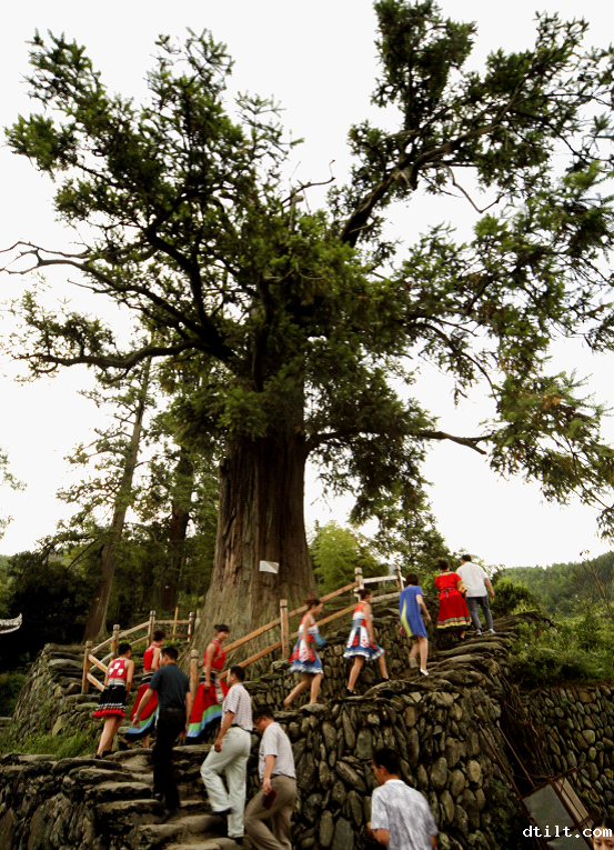 大寨古杉群与中国杉树王。大寨村的村落前耸立着一丛世人罕见的古杉群。这群千年古杉共有38棵,绝大多数生长在溪流的沙滩上,也有几棵屹立在小溪两岸的崖畔上。古杉群中,特别引人注目的是耸立在西边崖畔上的那棵最高最大的古老杉树,俨然如民间传说中顶天立地的英雄守卫在山寨隘口。林业专家、教授们测量,此三树胸径2.45米,胸围7.7米,冠幅28米,树高30米以上,立木蓄积量达50多立方米。据省林科所鉴定,它是我省目前发现的最大杉树,比福建的杉树王(胸径1.6米,胸围5.02米)还大40%以上,是“中国杉树之王”!民间传说,这棵古杉为十五世纪六十年代初所栽,迄今已有五百多年的历史,但据湖南、安徽、江西三省林学家考证,它已有一千六百多年的高龄了,应是东晋时代(公元317—420年)人工所造。这棵古杉的营造年代甚至要比国内林业专家,教授们公认的我国人工营造杉树始于唐代元和八年(公元813年),还早400多年。
