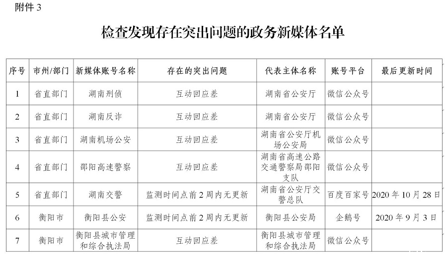 3.检查发现存在突出问题的政务新媒体名单