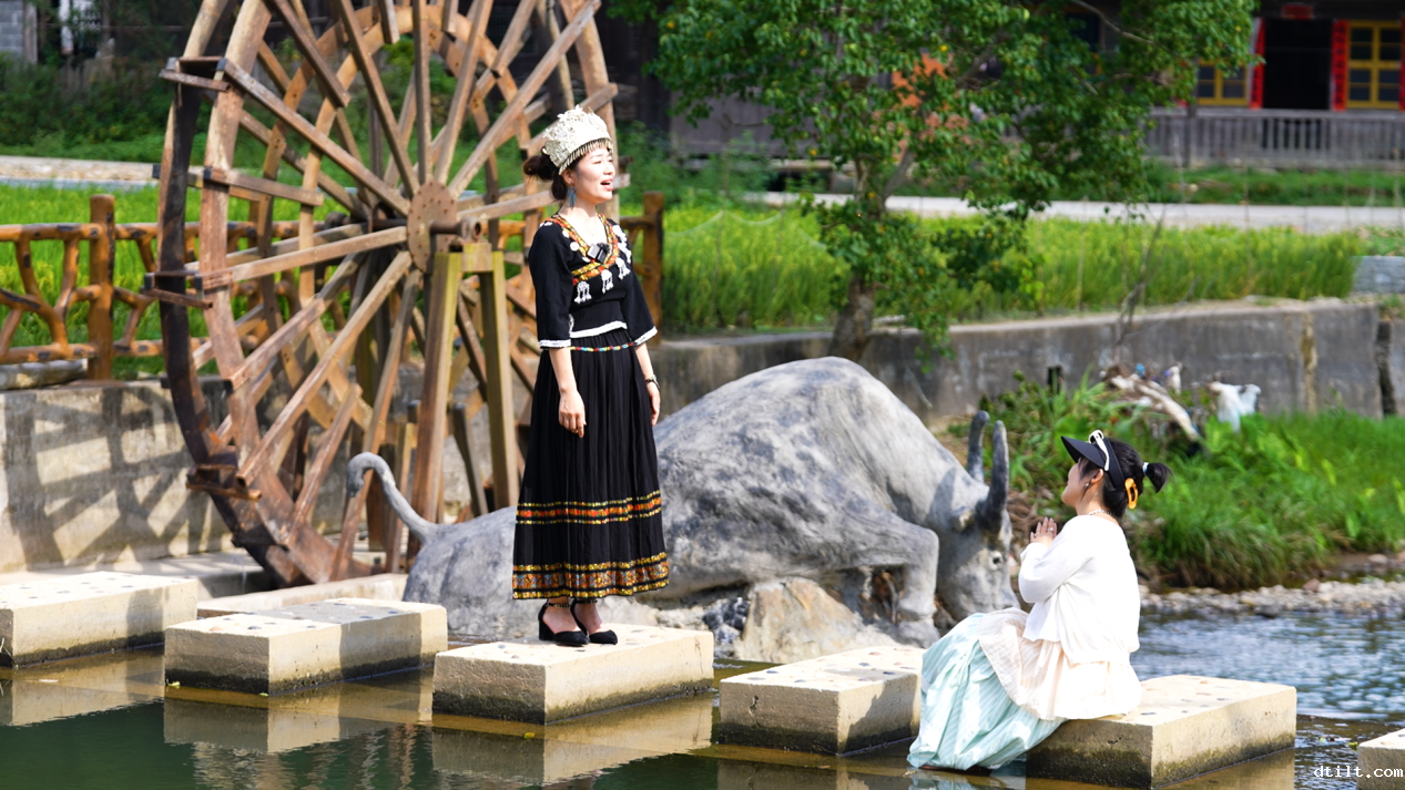 年轻的山歌传承者阳华英(左)为采风达人(右)献唱山歌(陈科帆 供图)