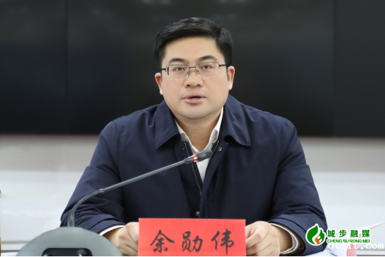 图为邵阳市人民政府党组成员、副市长、城步县委书记余勋伟在会上讲话