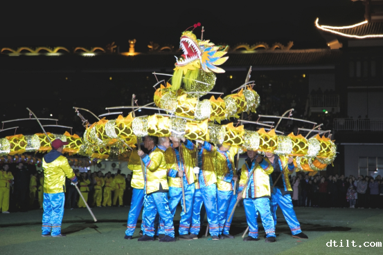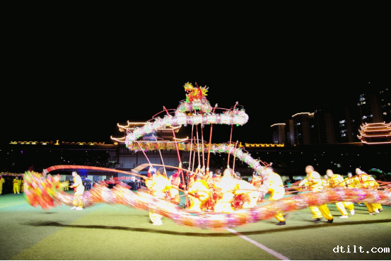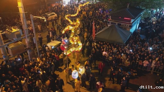 而最令人期待的,还是那独具特色的吊龙表演。数十名表演者高举竹竿,一条长达数十米的巨龙在他们手中缓缓升起。巨龙在空中盘旋,每一片鳞片都在月光下闪耀着金光,每一次摆动都引来阵阵惊叹。