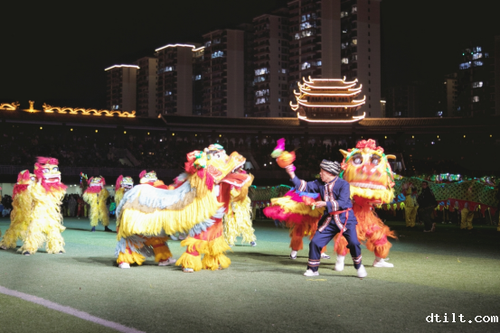 晚上7时整,县民族文化体育中心已是人山人海,13条龙灯,32只狮子,蓄势待发。龙灯金光闪闪,鳞片在月光下熠熠生辉;狮子威风凛凛,鬃毛在微风中轻轻摆动。
